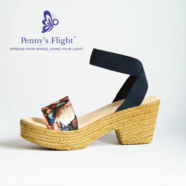 Introducing the Penny in Navy! Inspired by the joyful spirit of Penny Doerge, this sandal features a dreamy butterfly print and comfy navy straps. A symbol of strength, creativity, and resilience, The Penny honors her legacy through fashion with heart.